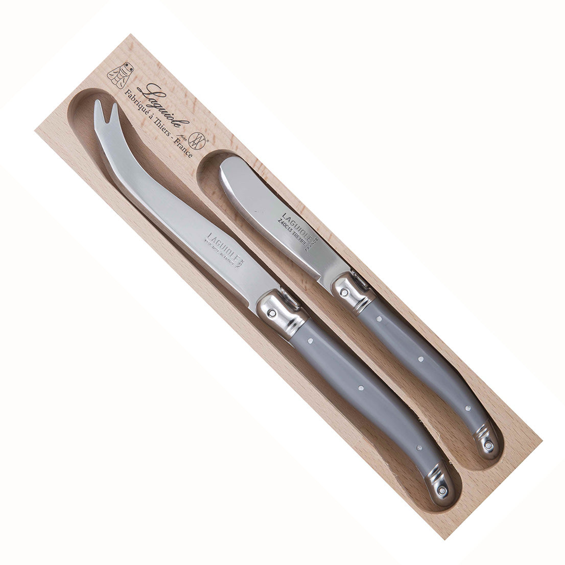 - Chic grey handles with full tang mirror-polished stainless steel. Tools include fork-tipped cheese knife and pate knife. Presented in a giftable European beech wood box.