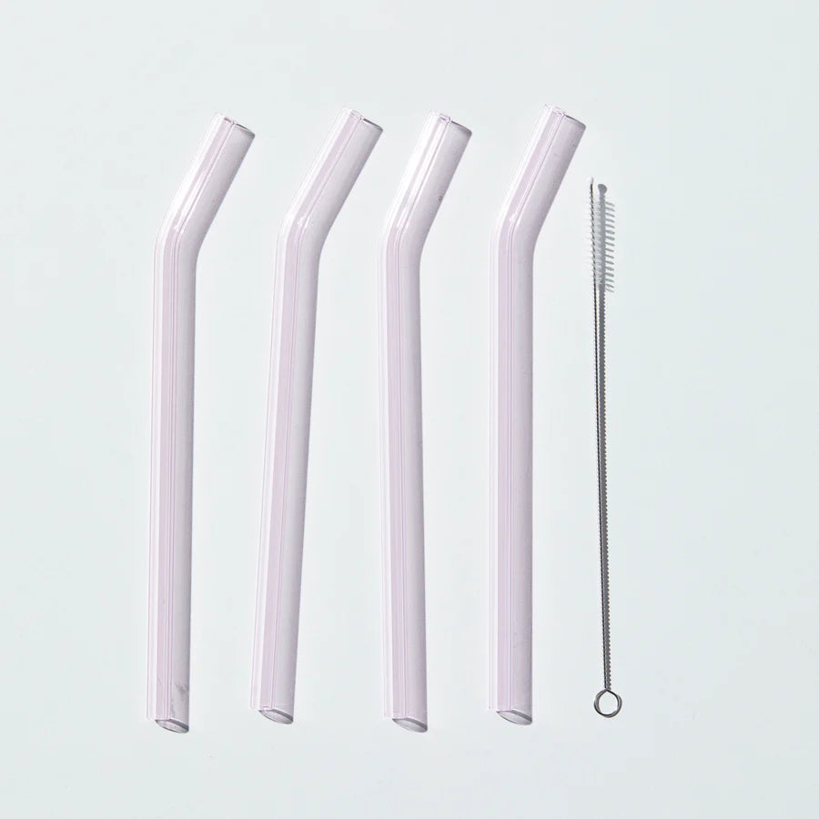 Suck up set of 4 reusable glass drinking straws in pink + brush cleaner.
