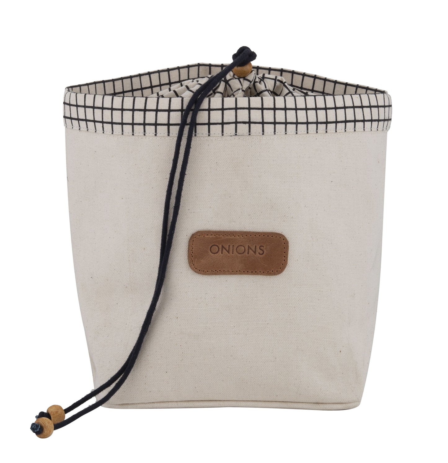 - Idea for storing onions. Features a drawstring closure with locking toggle to keep light out prolonging freshness of onions.